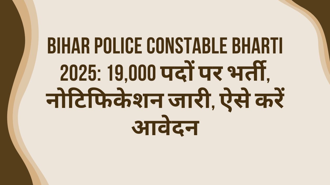 बिहार पुलिस में कांस्टेबल के 19,838 पदों पर भर्ती के लिए सेंट्रल सिलेक्शन बोर्ड ऑफ कांस्टेबल (CSBC) द्वारा आधिकारिक नोटिफिकेशन जारी किया गया है। यह भर्ती उन उम्मीदवारों के लिए एक सुनहरा अवसर है जो सरकारी नौकरी की तलाश में हैं। इस लेख में, हम इस भर्ती से संबंधित सभी महत्वपूर्ण जानकारी प्रदान करेंगे, जिससे आप आवेदन प्रक्रिया, पात्रता मानदंड, चयन प्रक्रिया, वेतनमान और अन्य संबंधित विवरणों को समझ सकेंगे।