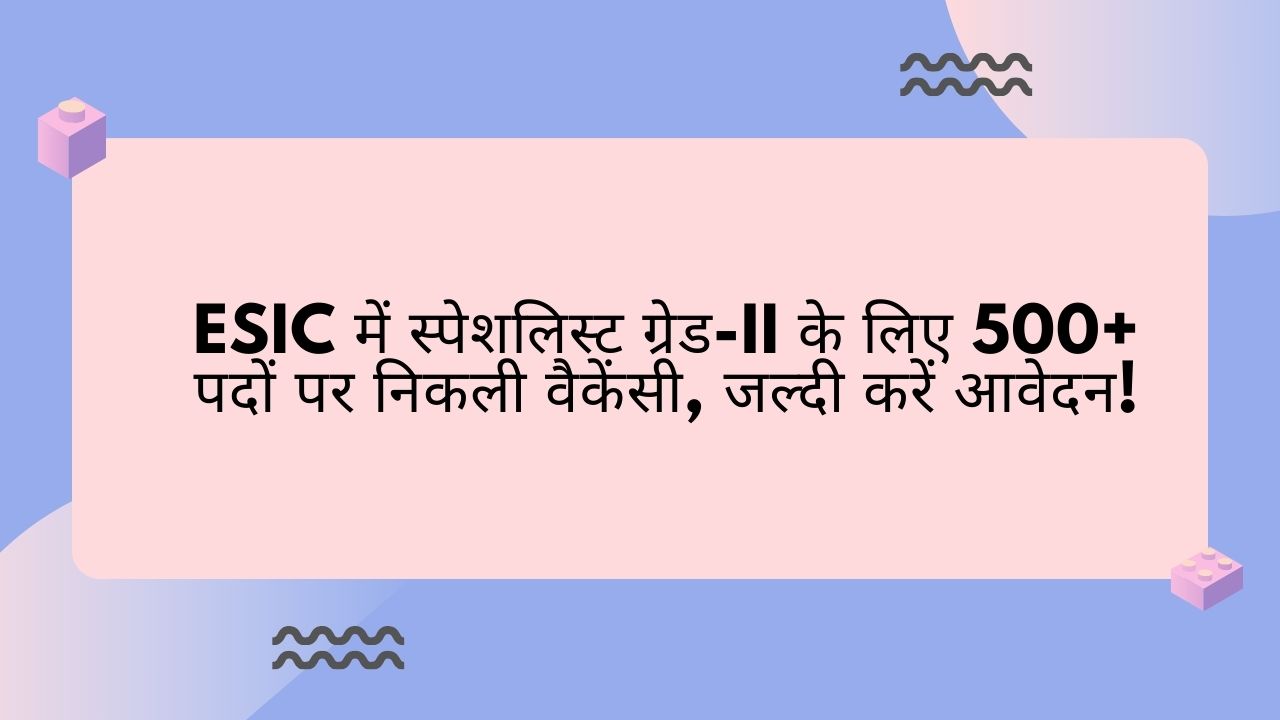 मेडिकल क्षेत्र में करियर बनाने के लिए सरकारी संस्थाओं में अवसरों की कोई कमी नहीं है। अगर आप भी चिकित्सा के क्षेत्र में अपना करियर ऊंचाइयों तक पहुंचाने का सपना देख रहे हैं, तो कर्मचारी राज्य बीमा निगम (ESIC) में निकली स्पेशलिस्ट ग्रेड-II के पदों पर भर्ती का अवसर आपके लिए सुनहरा मौका हो सकता है। इस बार ESIC ने स्पेशलिस्ट ग्रेड-II के जूनियर और सीनियर स्केल के कुल 500+ पदों पर भर्ती के लिए आवेदन आमंत्रित किए हैं। इन पदों के लिए योग्य उम्मीदवारों से आवेदन मांगे गए हैं और यह अवसर उन सभी के लिए है जो चिकित्सा के क्षेत्र में एक मजबूत करियर की तलाश कर रहे हैं।